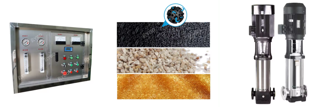 1. High-quality membrane shell: SUS304 and FRP materials are available. Good sealing, good pressure resistance, long service life, and protection of reverse osmosis membrane from damage 2. Famous brand reverse osmosis membrane: We only use world-renowned brands and reverse osmosis membranes to ensure that we get perfect water purification 3. Automatic cleaning valve: automatic flushing, regeneration, water replenishment, and salt absorption without manual operation. 4. Simple operation buttons and clear instrument panel: It will clearly display voltage, current, conductivity, water inlet pressure, concentrated water pressure, pure water flow, and concentrated water flow 5. High-quality filter material: We use high-quality filter material, quartz sand, activated carbon, and resin to achieve ideal filtering effects 6. Famous brand pressure pump: We only use famous brand reverse osmosis pumps, stainless steel, strong corrosion resistance, shock absorption design, and low noise.